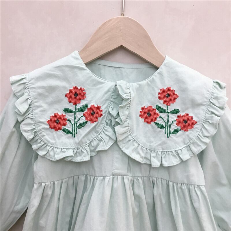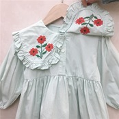 スプリングドレス プリント柄カラー長袖スリーブ ロング レッド 刺繍 春物 mi5394913671076