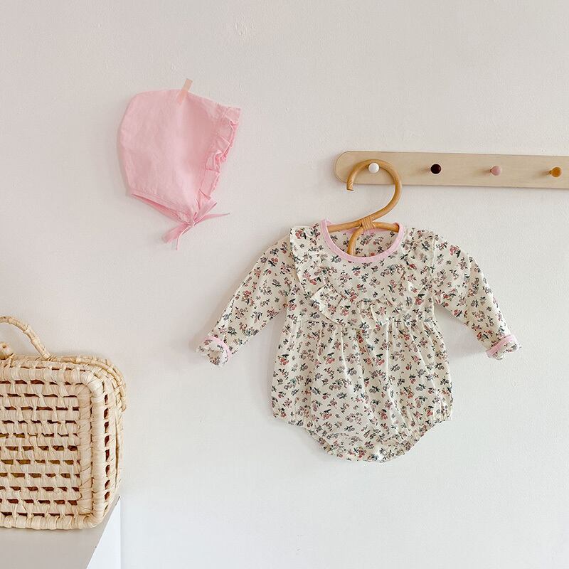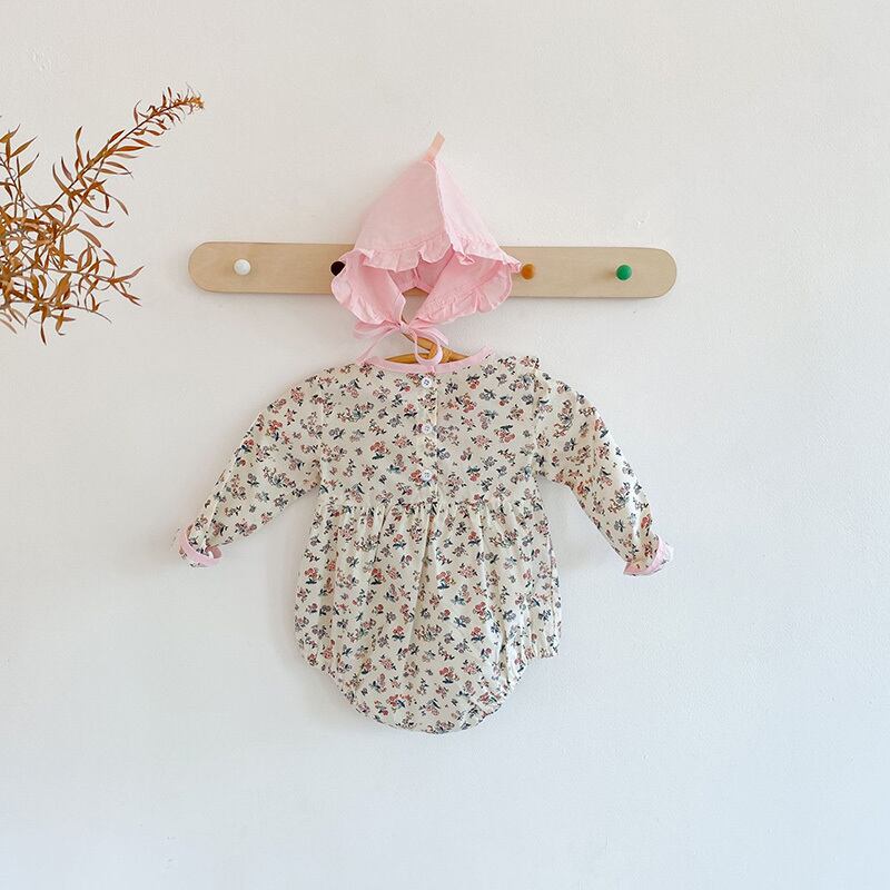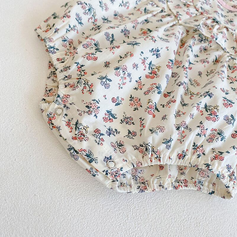 フローラルワンピーススリーブジャンプスーツ オールインワン コットン 帽子 花柄 ピュア mi5333792893912