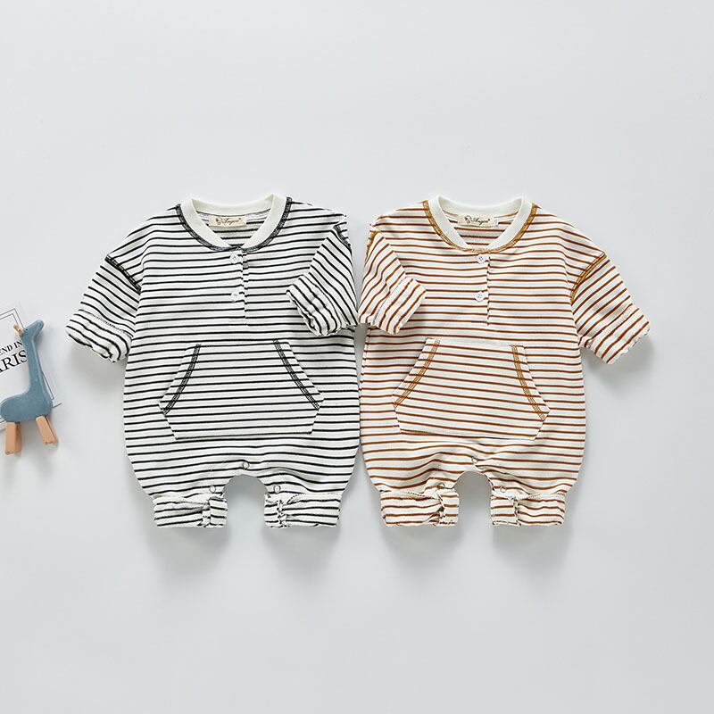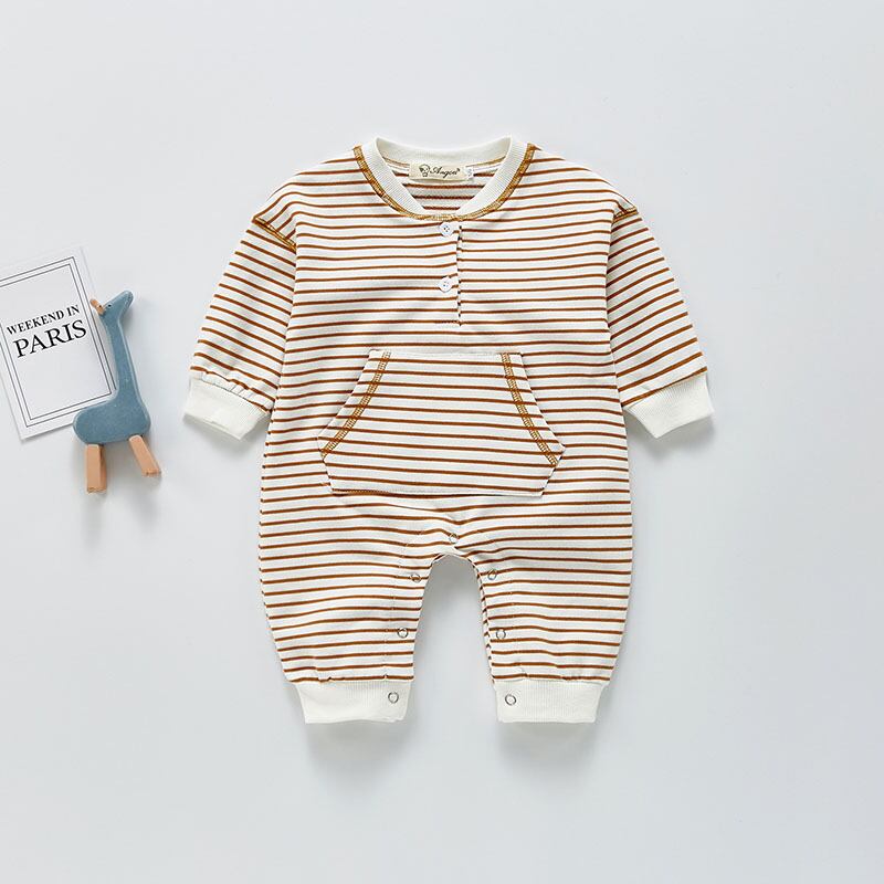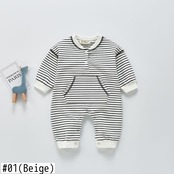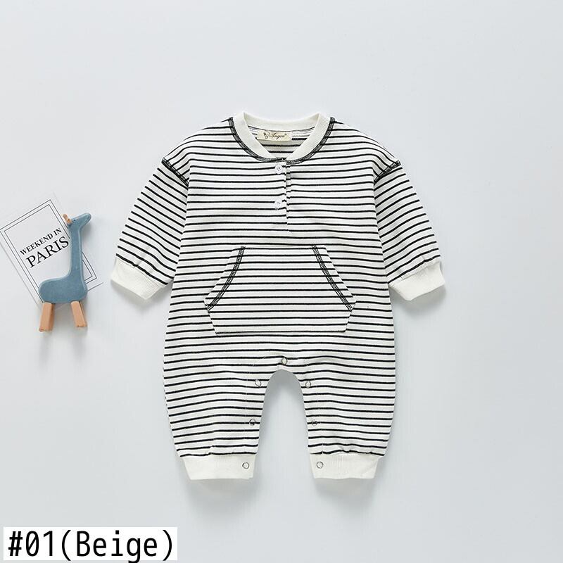 スプリングストライプOネック長袖スリーブジャンプスーツ オールインワン ロング 春物 mi5325644298845
