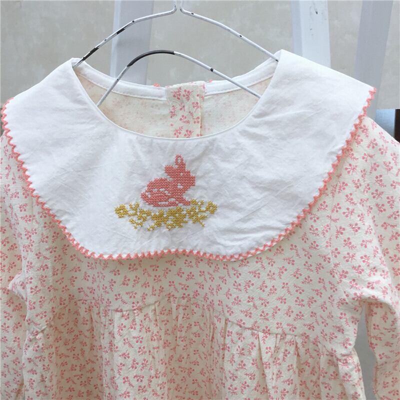 スプリングドレス 刺繍カラー長袖スリーブフローラル ロング 春物 花柄 mi5370888754204