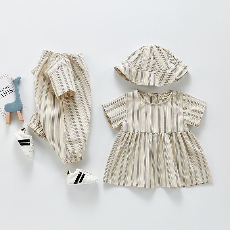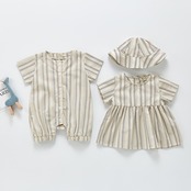 サマーストライプロンパース オールインワン ドレス 帽子 夏物 mi5377836250820