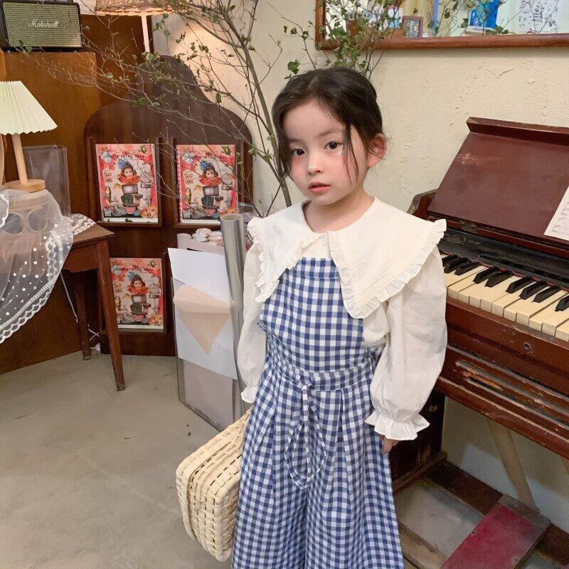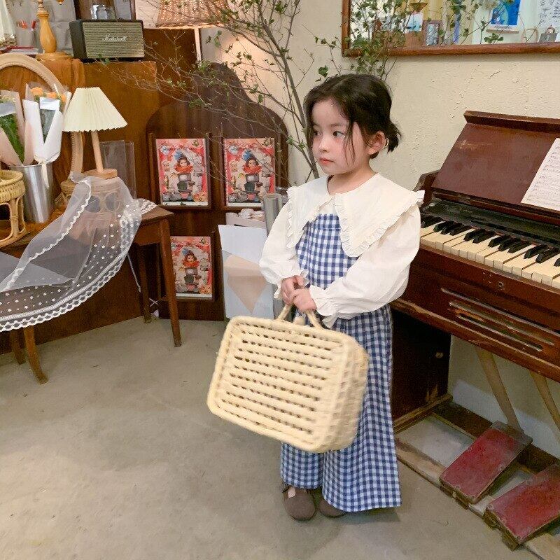 スプリングオーバーオール 格子柄ワイドレッグ 春物 キッズ ワイドパンツ mi531025858210