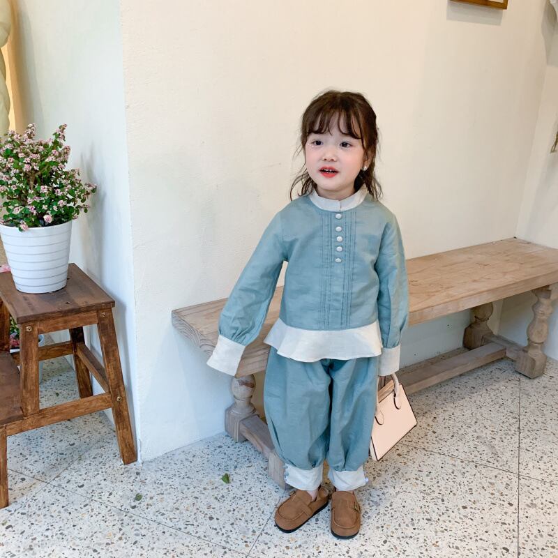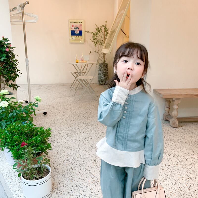 スプリング長袖スリーブシャツ ブルーパンツ ロング 春物 mi5344540608988