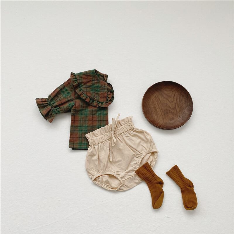スプリングセット ラッフルブラウス ソリッド ショーツ 春物 ブルマー ソリッドカラー mi5378058087207