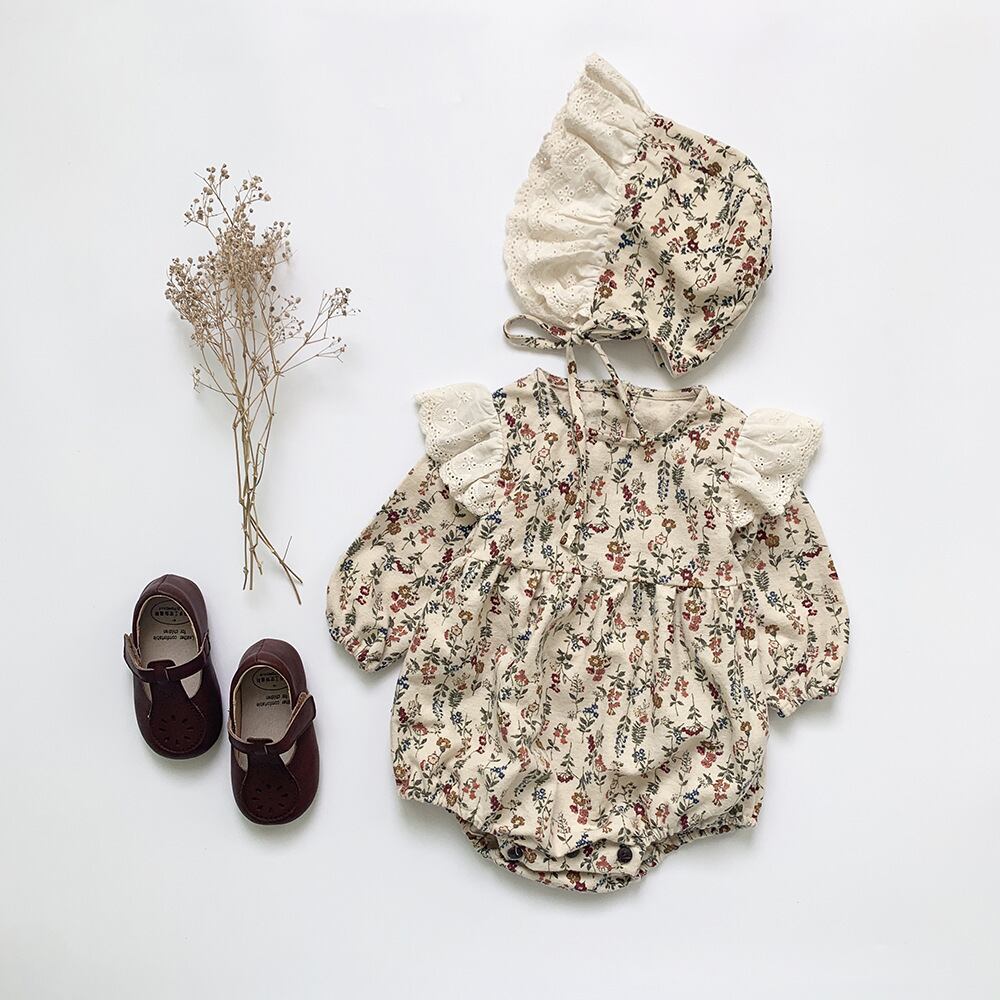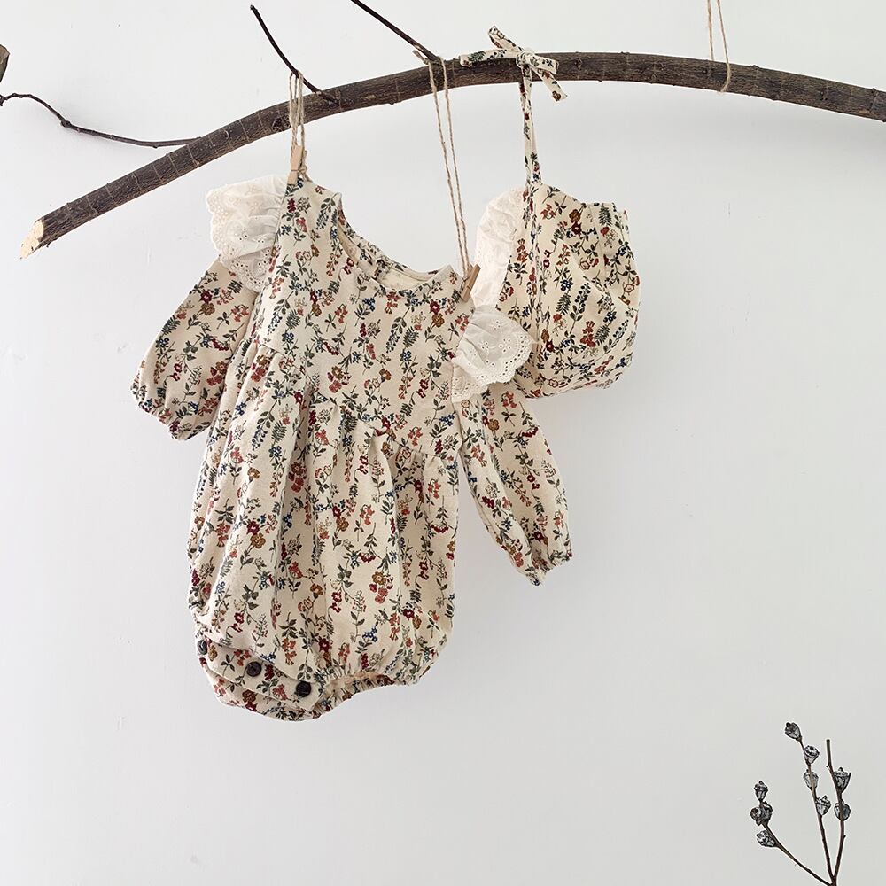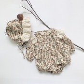 フローラルワンピース長袖スリーブジャンプスーツ オールインワン ロング 帽子 花柄 mi5329581771099