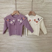 ラッフルカラーニット 刺繍 カーディガン mi5381965029578