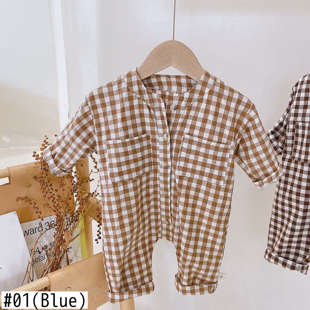 スプリング格子柄長袖スリーブロンパース オールインワン ロング 春物 mi5338908690611