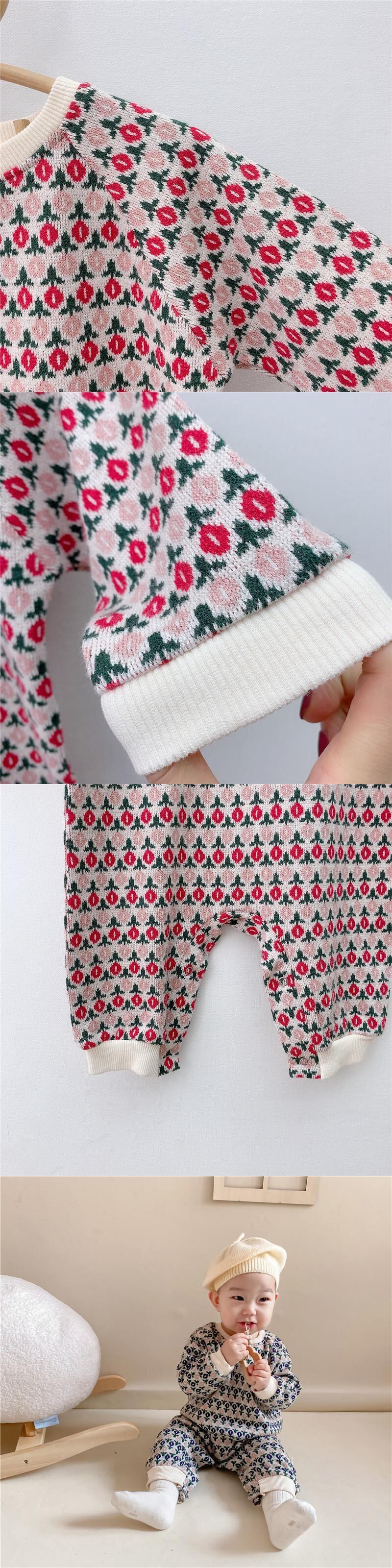 スプリングロンパース オールインワン フローラルニットパターン 春物 花柄 mi5358481750068