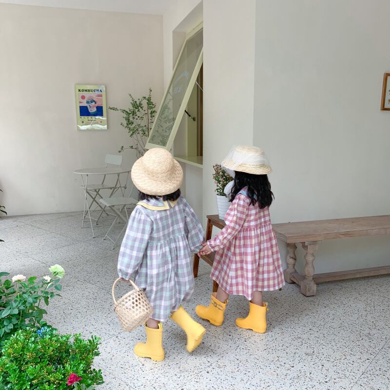 スプリングドレス 格子柄カラー 春物 キッズ mi5375996338648