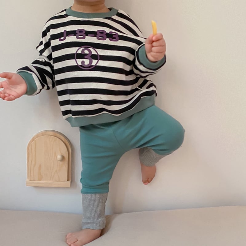 スプリングセット ストライプレギンス アウター パーカー 春物 mi533819920969