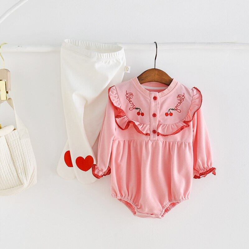 スプリングラッフルカラー刺繍ロンパース オールインワン 春物 mi5320301465135