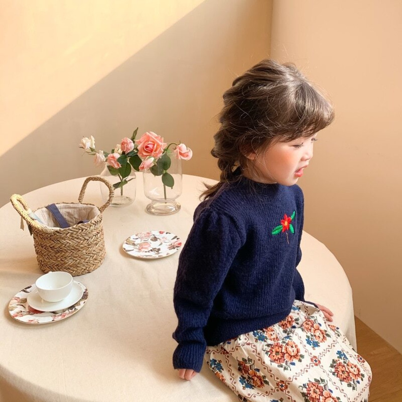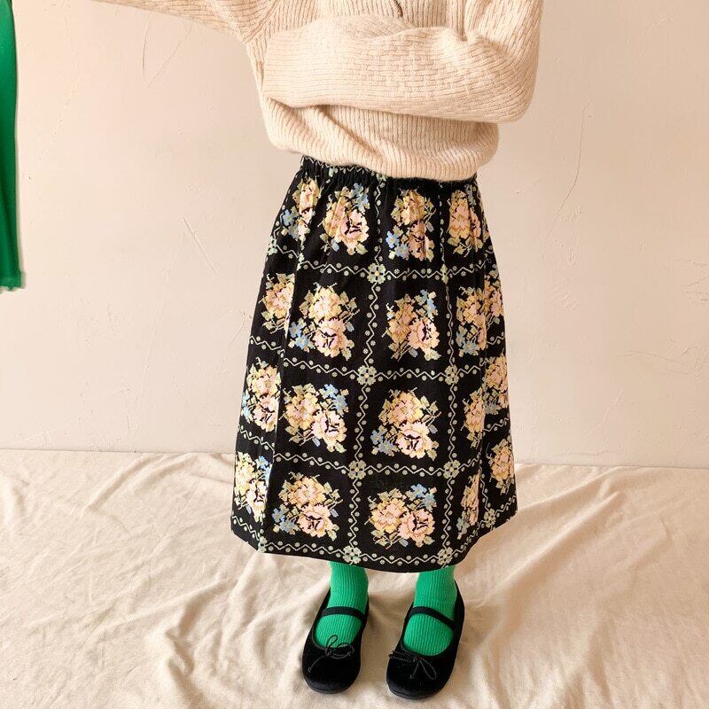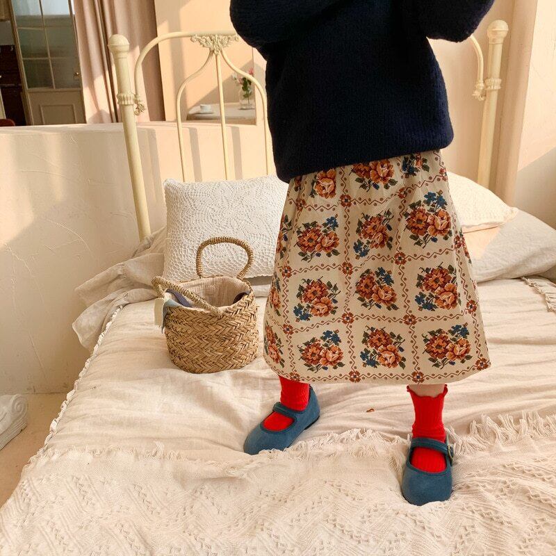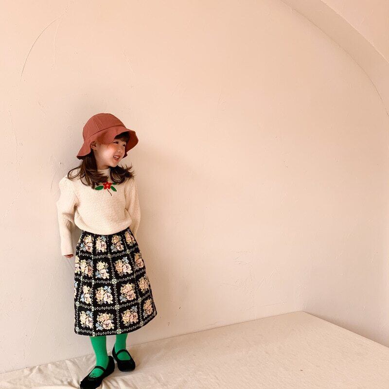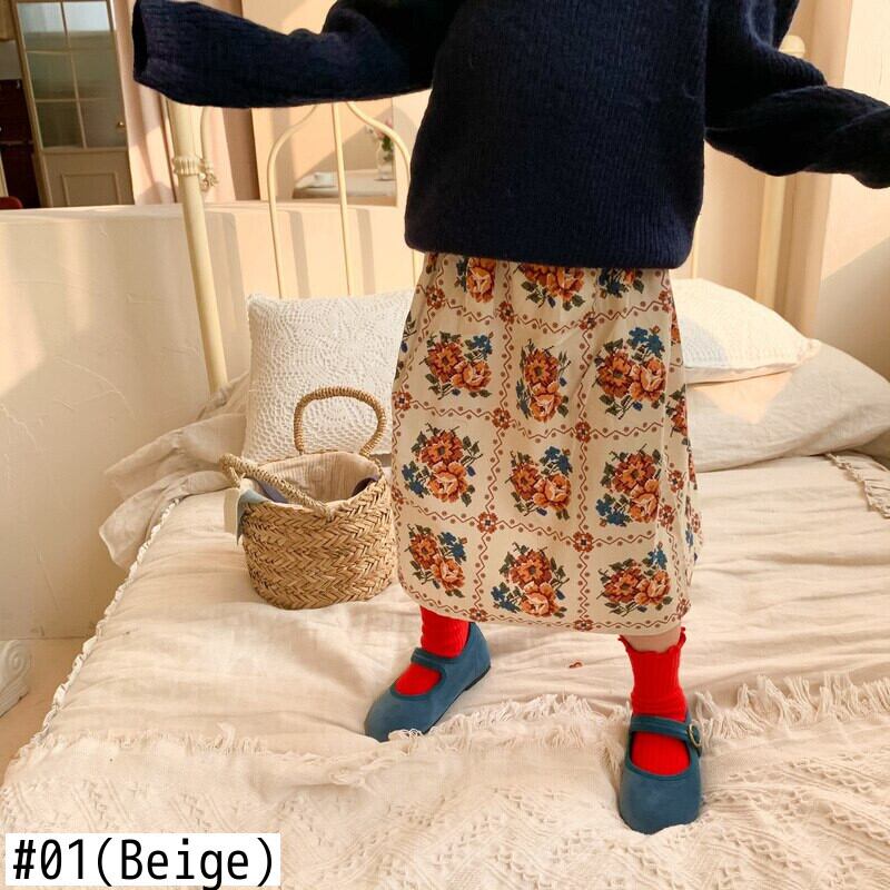 サマースカート スタンダードFlowerデザイン レトロ 夏物 キッズ フラワーデザイン mi5366432548936