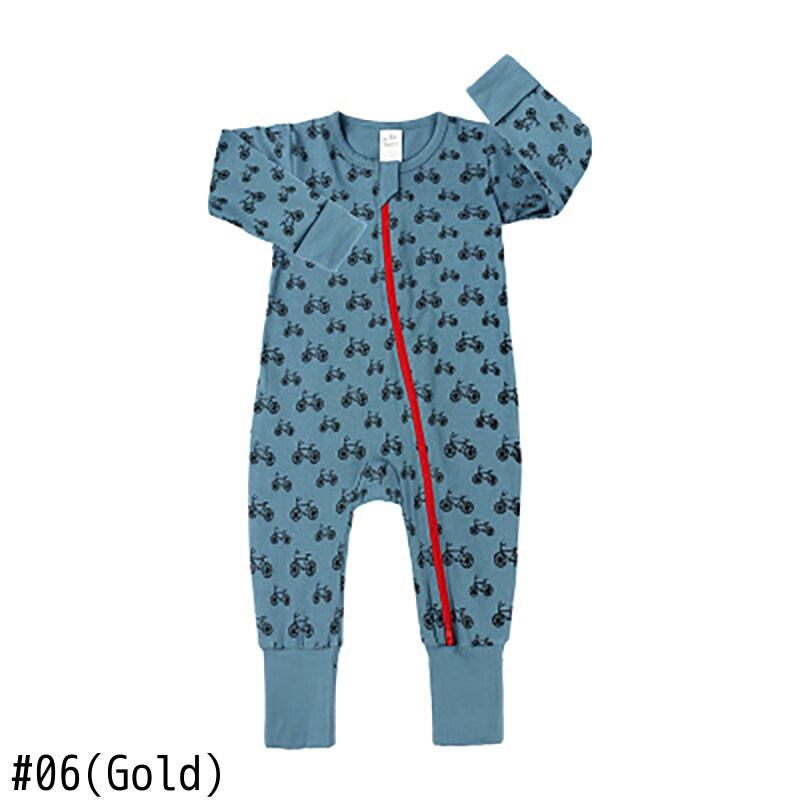 サマープリント柄長袖スリーブロンパース オールインワン ロング コットン 夏物 mi5323766035717