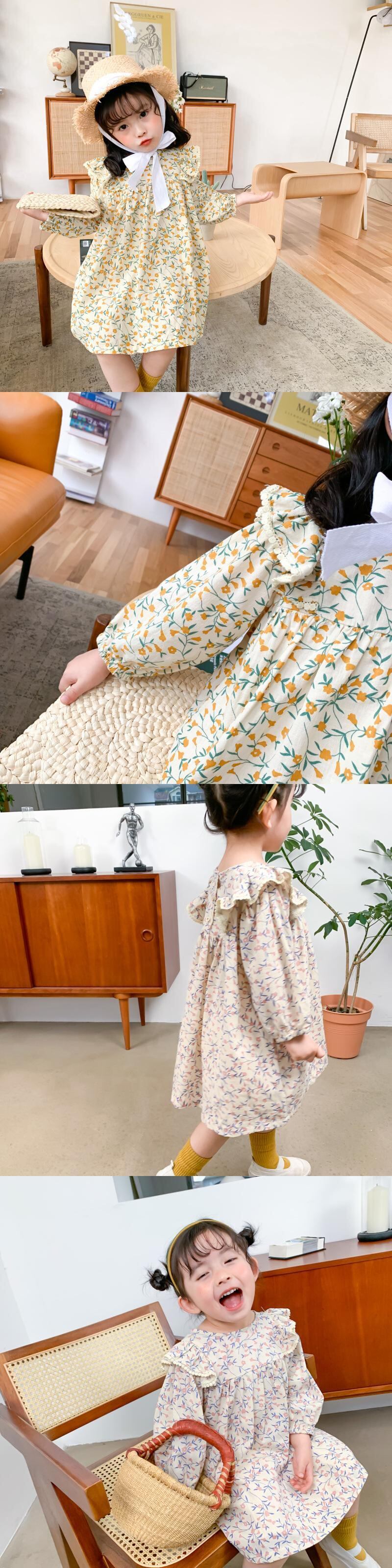 スプリングフローラル長袖スリーブドレス ラウンドネックレース ロング 春物 花柄 Oネック mi5329926934124