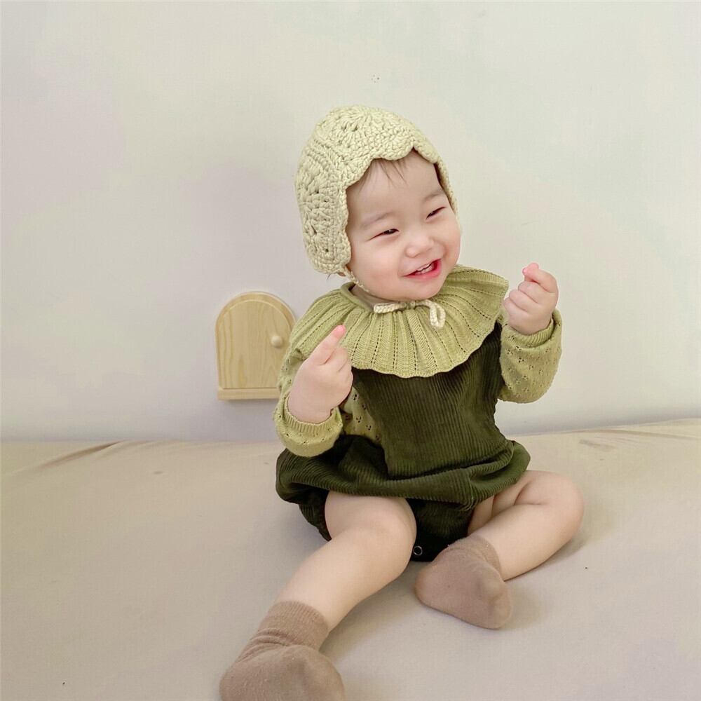 スプリングコーデュロイワンピースラッフルカラーセーター 春物 mi5361068587897