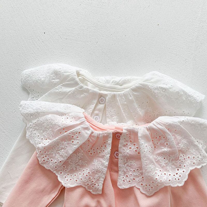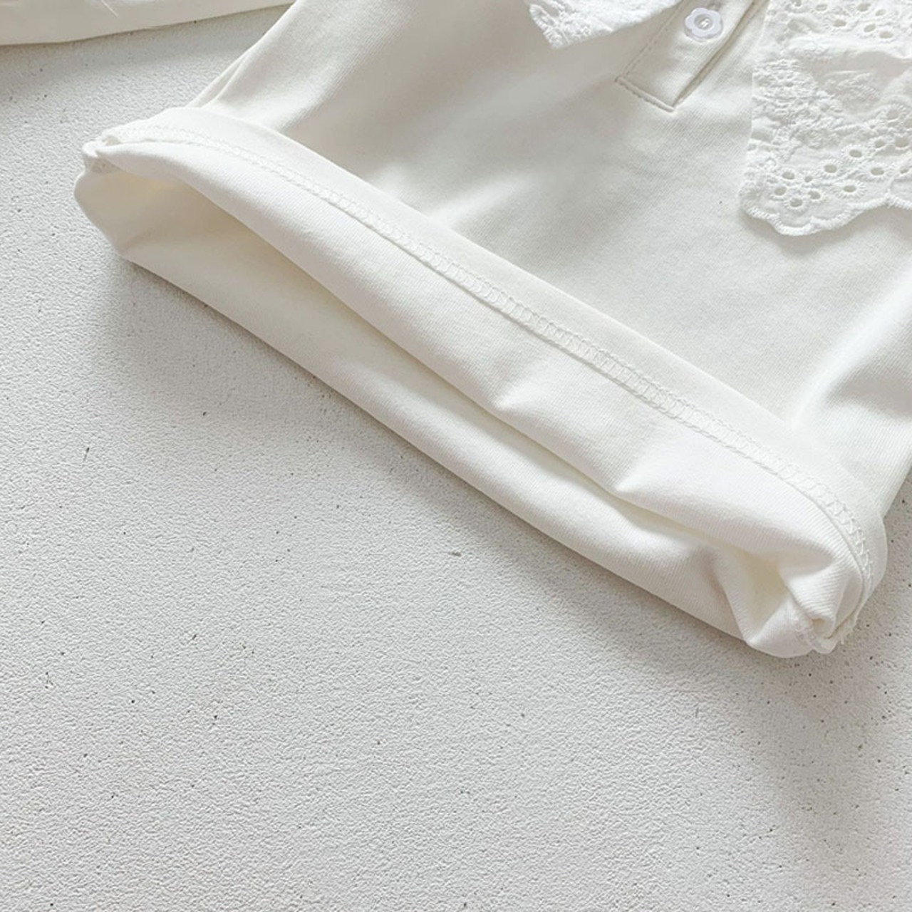 スプリングOネックカラーソリッド レースブラウス 春物 ソリッドカラー mi5312655281793