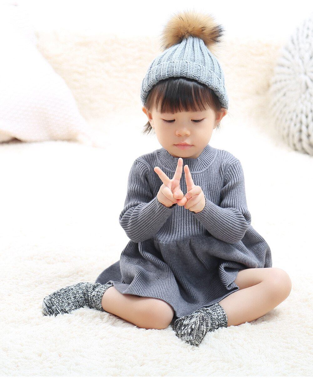 オータムドレス ワンピース ソリッド ラッフルニット 秋物 キッズ ソリッドカラー mi5330161025272