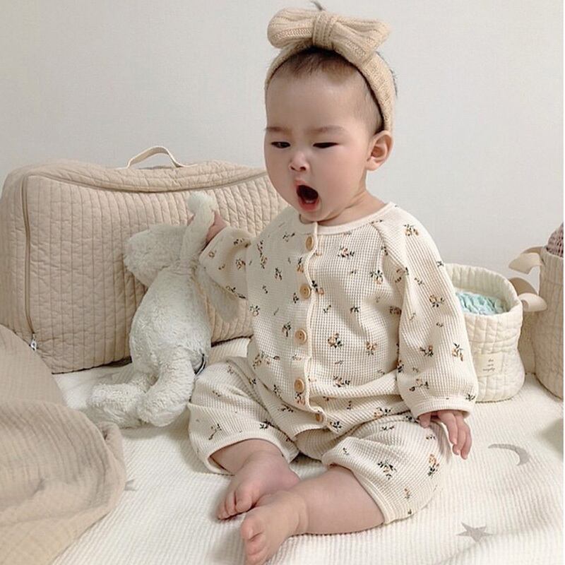 スプリングロンパース オールインワン スリーブフローラルセット コットン 帽子 春物 キッズ 花柄 mi5362765600458