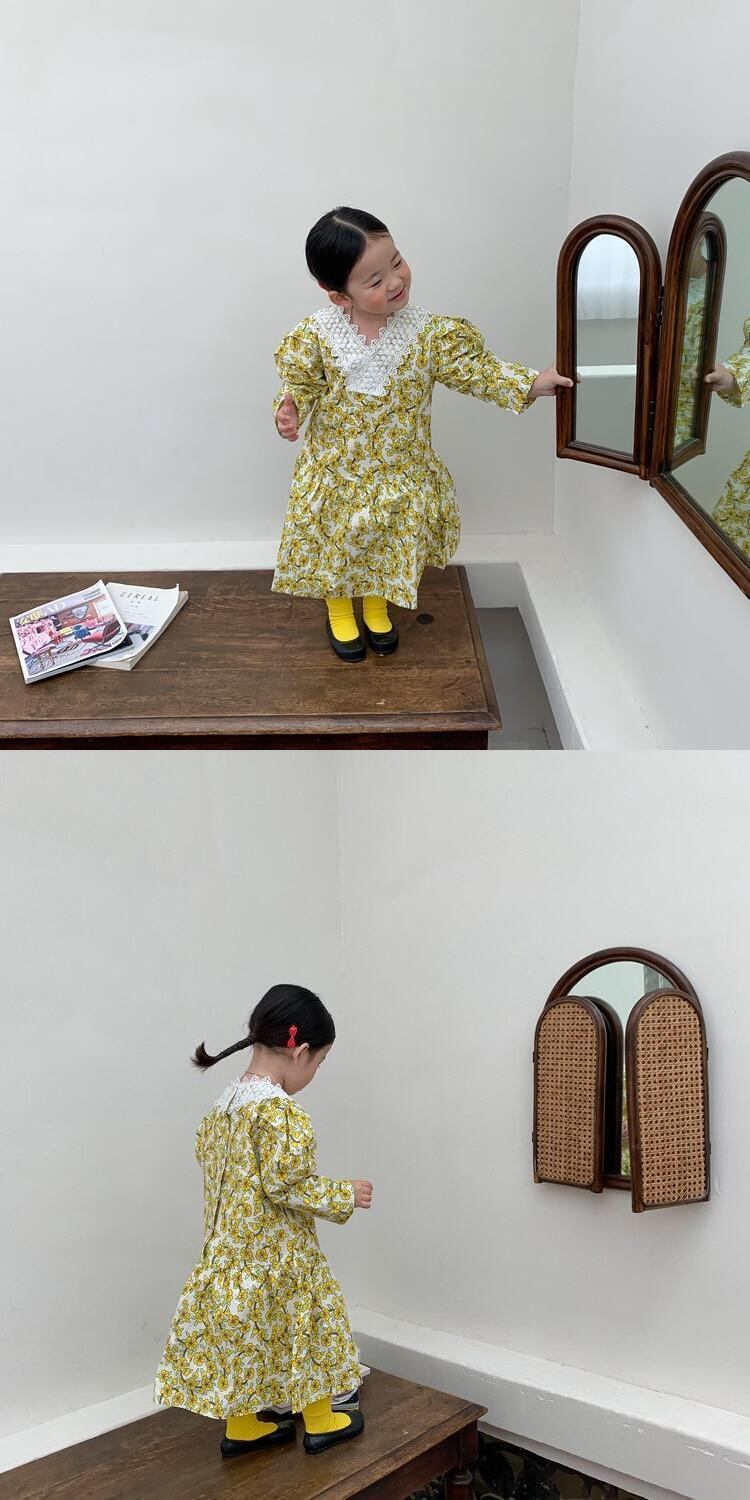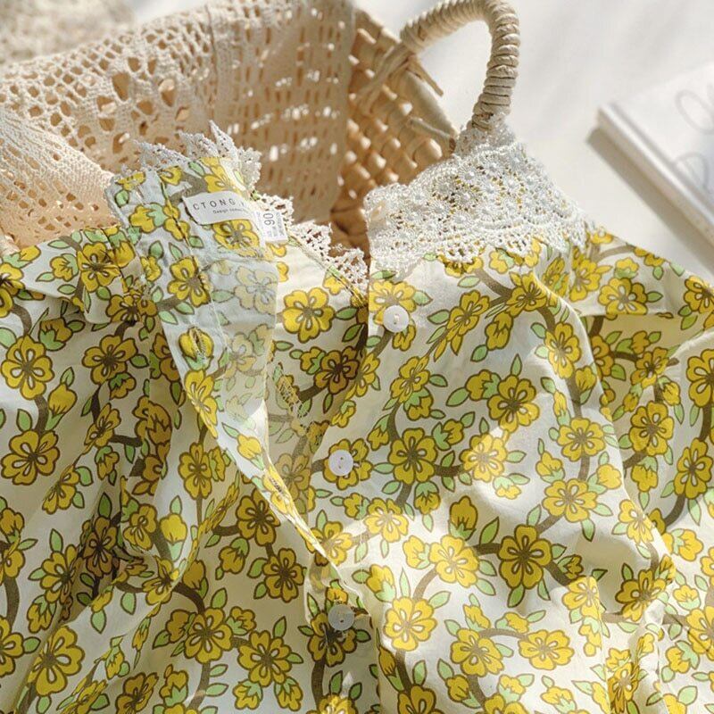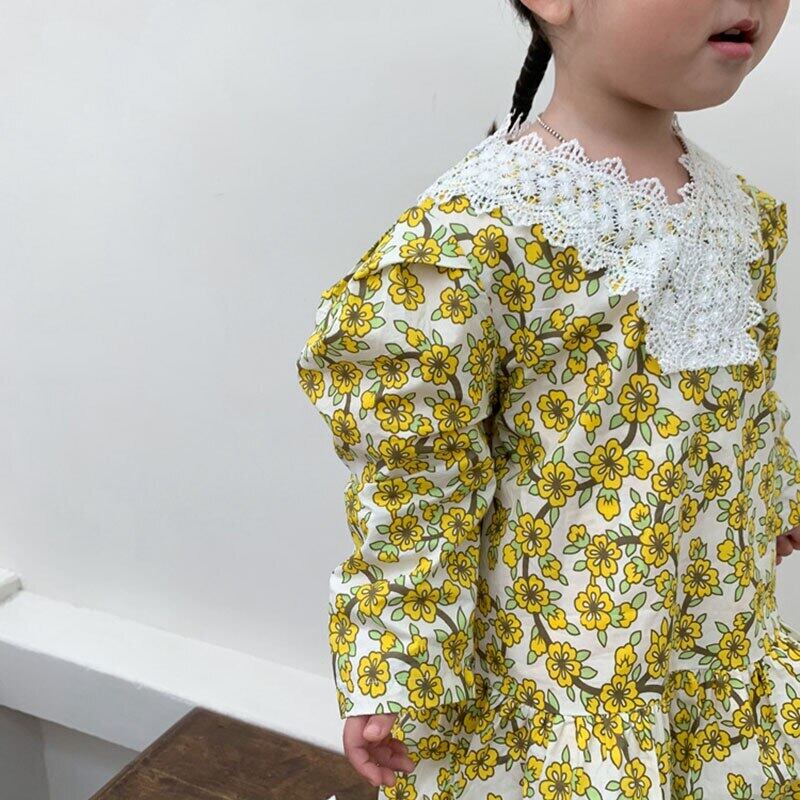 スプリングプリント柄レースVネック長袖スリーブドレス ロング 春物 mi5366257532484