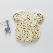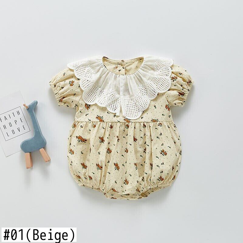 サマーレースカラーフローラル半袖スリーブジャンプスーツ オールインワン ショート コットン ハーフスリーブ 夏物 花柄 mi5378071865787