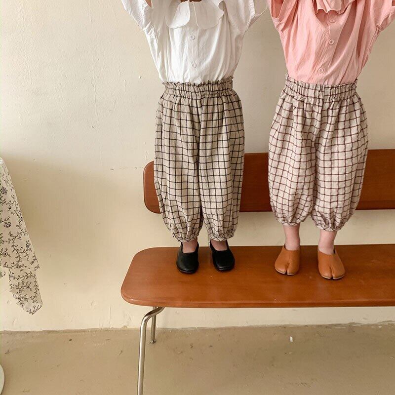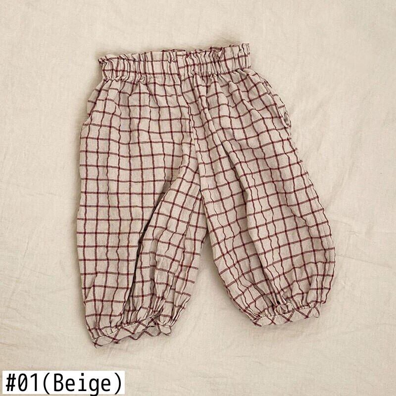サマーパンツ 格子柄ルーズストレッチウェスト エラスティック 伸縮 夏物 キッズ mi5323771433672