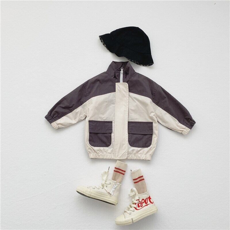 スプリングコート パッチワーク長袖スリーブジャケット ロング 春物 キッズ mi5380479756925