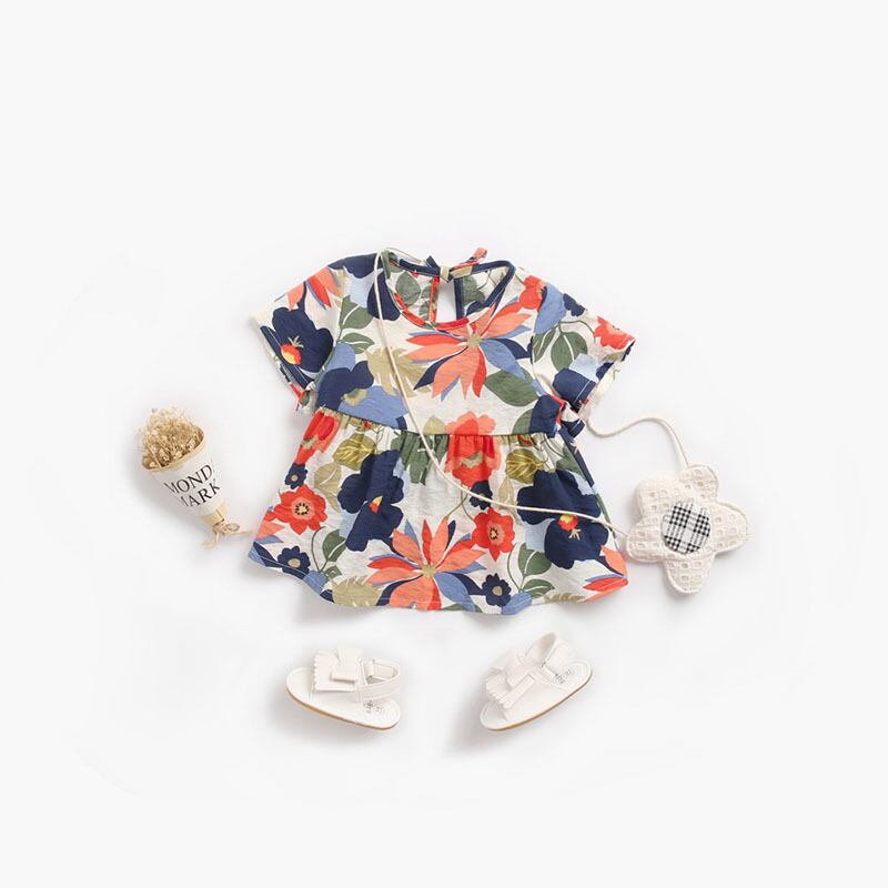 スプリングドレス Oネック半袖スリーブフローラル ショート ハーフスリーブ 春物 花柄 mi5333715265462