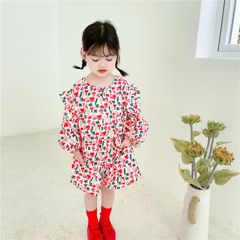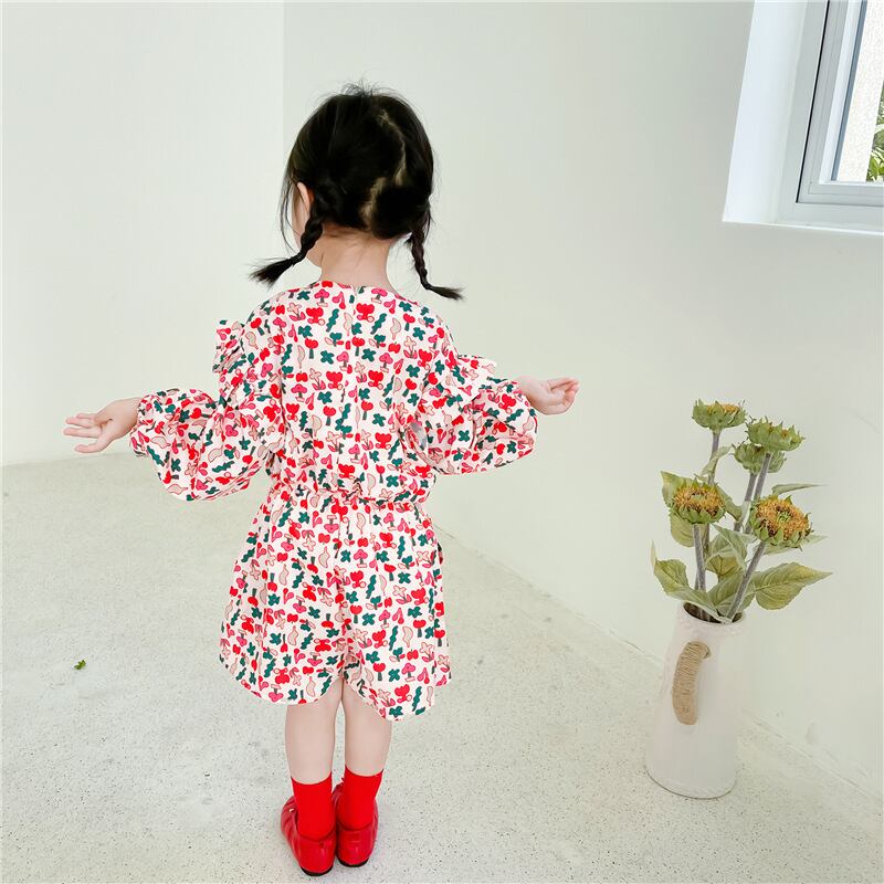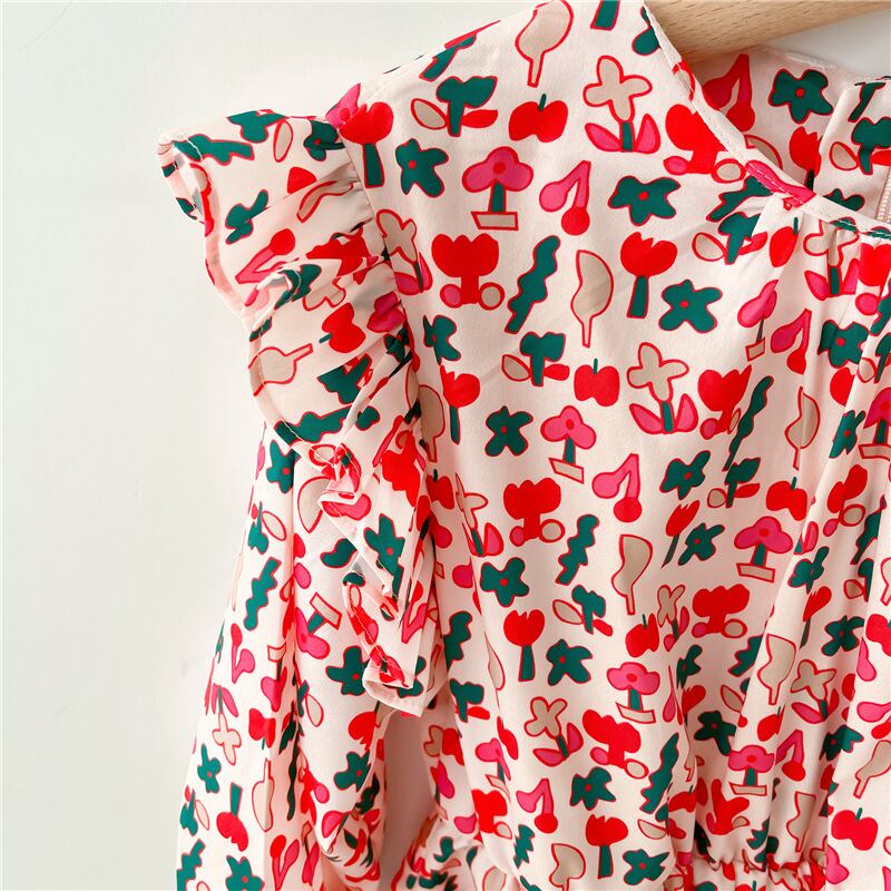 サマーオーバーオール スリーブプリント柄ショーツ シフォンワンピース フレアスリーブ 夏物 ブルマー mi5396884243457