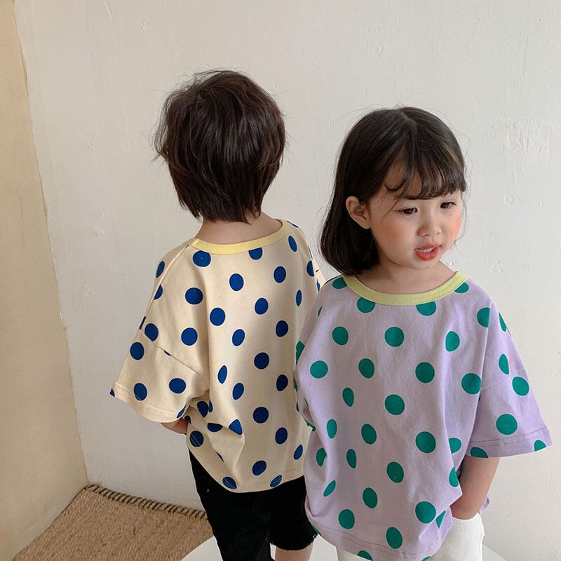 サマーTシャツ 水玉Oネック コットン 夏物 キッズ mi5344351923086