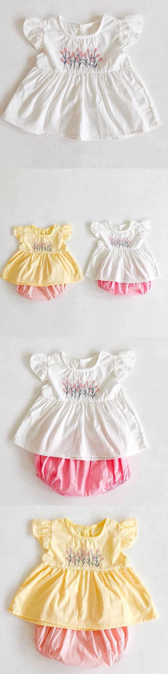 半袖スリーブフローラル刺繍ショーツ サマー ショート コットン ハーフスリーブ 夏物 ブルマー 花柄 Tシャツ mi5385688329574