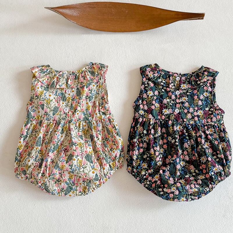 ジャンプスーツ オールインワン ノースリーブフローラルプリント柄サマー コットン 夏物 花柄 mi5358674948130