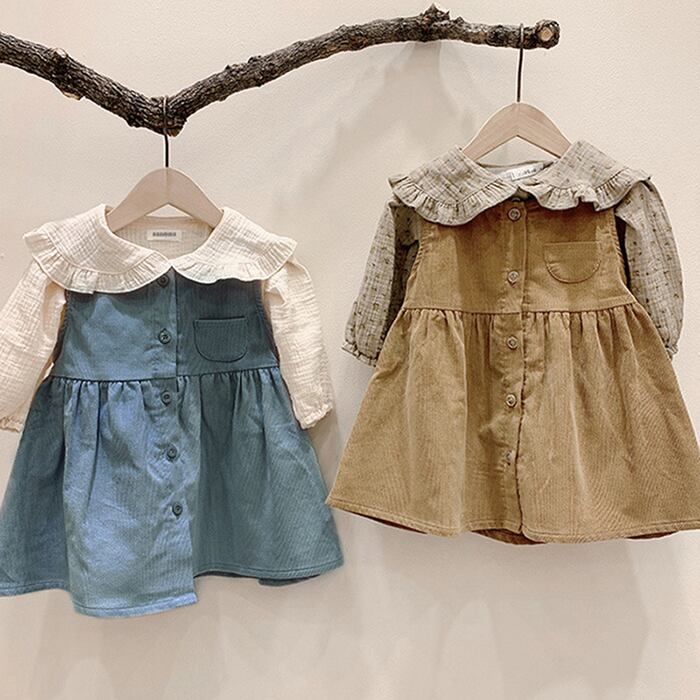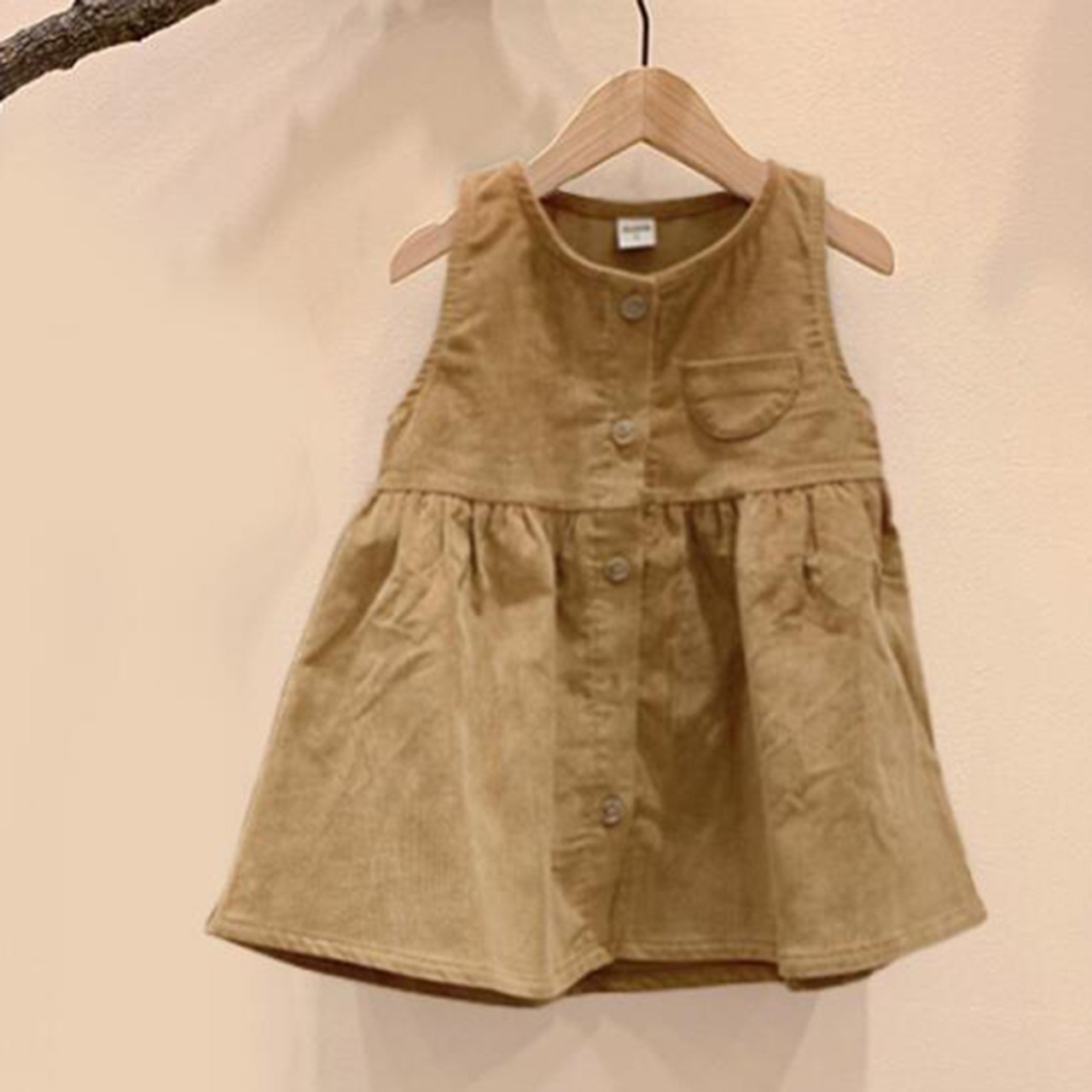 スタイルコーデュロイソリッド ポケットノースリーブドレス ドレス ワンピース キッズ ソリッドカラー mi5350430184776