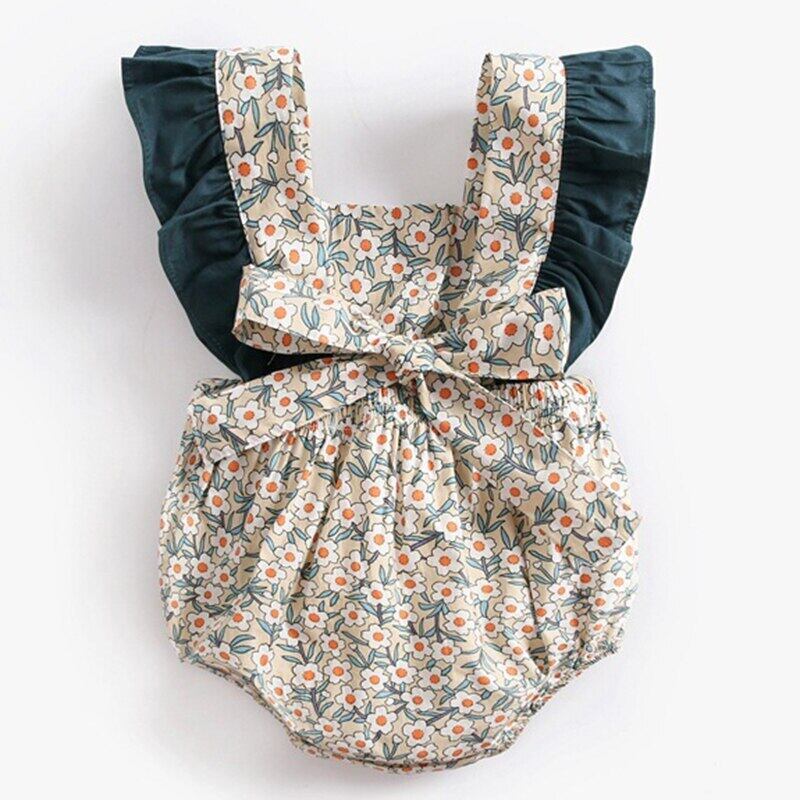 Flowerデザイン ロンパース オールインワン サマースリーブフリルスタンダードスタイルジャンプスーツ オールインワン コットン レトロ ラッフル 夏物 フラワーデザイン mi5332694560176