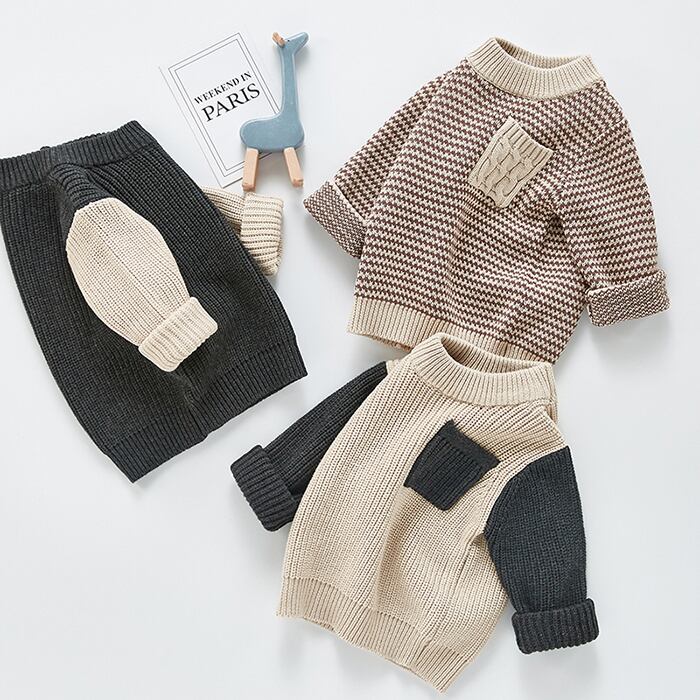 スタイルスプリングオータム長袖スリーブニットセーター プルオーバー トップス ロング 春物 秋物 キッズ mi535235541875
