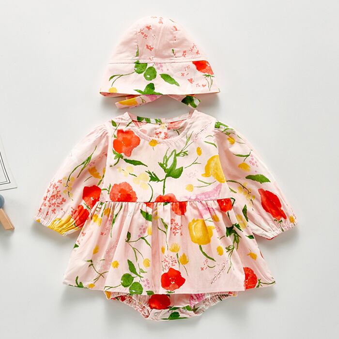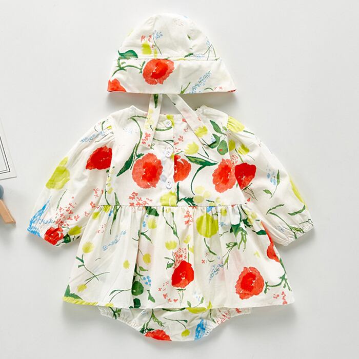 長袖スリーブワンピースフローラルドレス ロンパース オールインワン オータムトライアングル ロング 秋物 花柄 mi534514263927