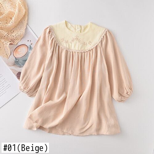 ドレス スプリングオータムFlowerデザイン 刺繍長袖スリーブ ロング コットン 春物 秋物 キッズ フラワーデザイン mi5361175357034