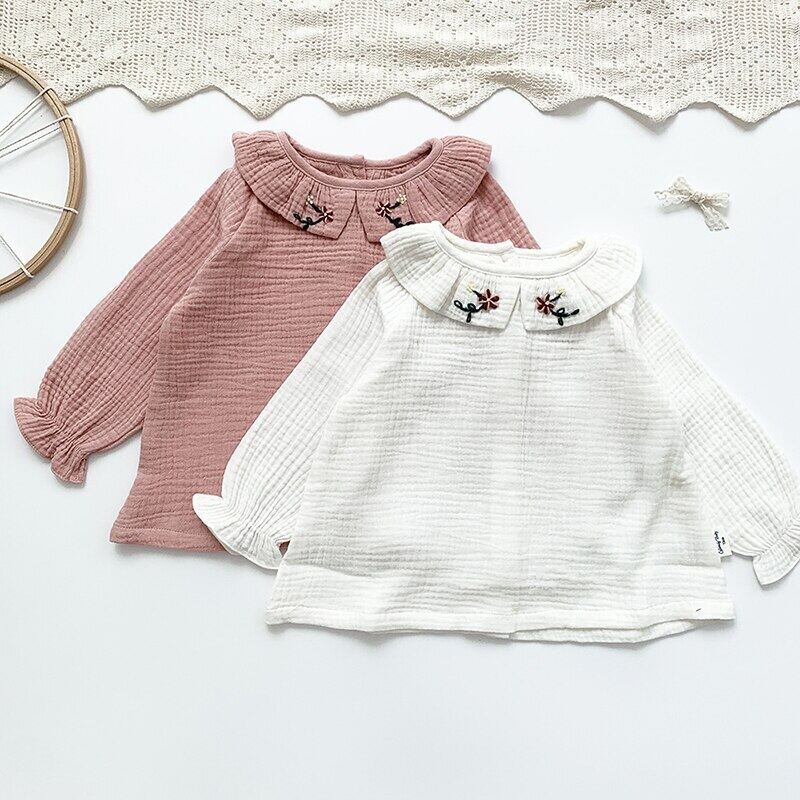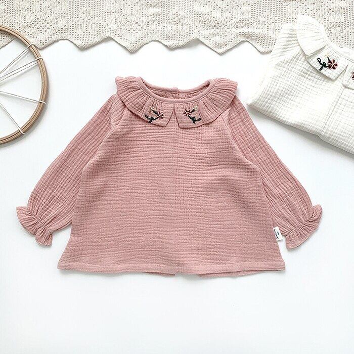 刺繍長袖スリーブTシャツ スプリングオータムプルオーバー コート トップス ロング コットン 春物 秋物 キッズ mi5376603531106
