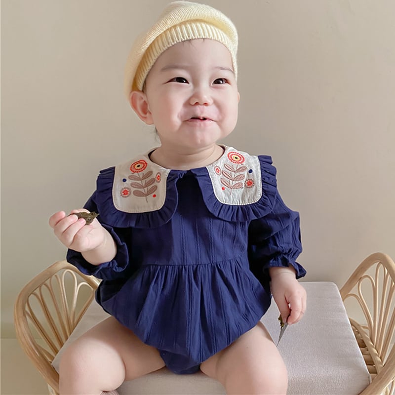 フローラル刺繍カラー長袖スリーブジャンプスーツ オールインワン ワンピーススタイルロンパース オールインワン ロング コットン 花柄 mi5352627257680