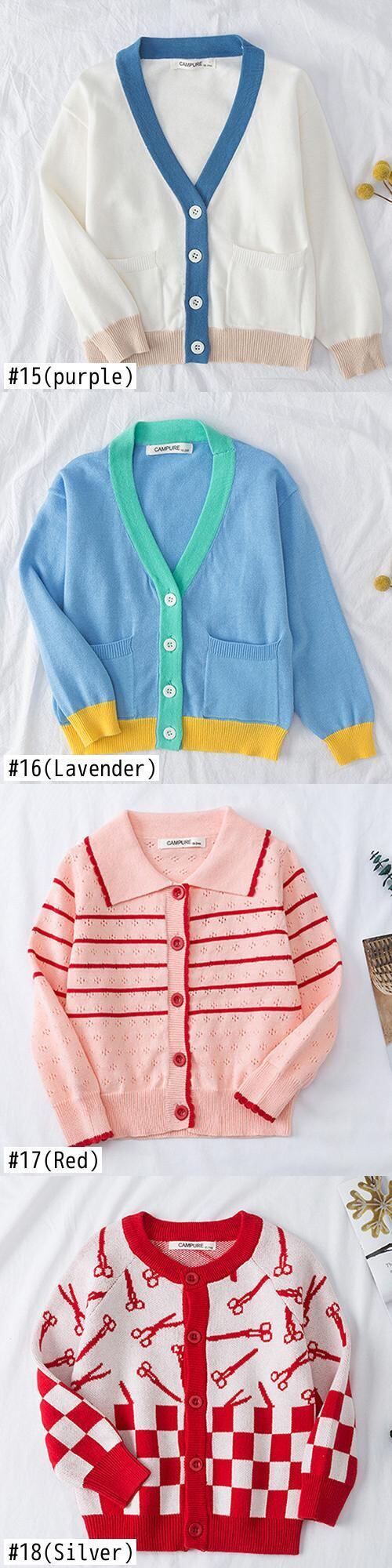 オータムニット カーディガンコート ストライププリント 秋物 mi539822742181