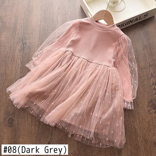 スプリングオータムニットレースドレス ワンピース 長袖スリーブ ロング 春物 秋物 キッズ mi5312890200844