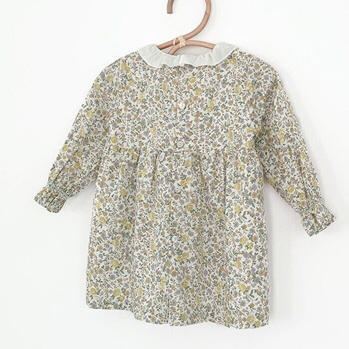スプリングオータム長袖スリーブFlowerデザイン ドレス ドレス ワンピース ロング コットン 春物 秋物 キッズ フラワーデザイン mi5351832451714