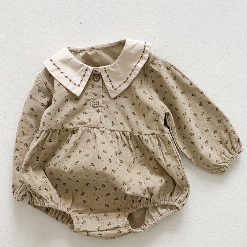 スプリングオータムコーデュロイFlowerデザイン 刺繍長袖スリーブジャンプスーツ オールインワン ロング コットン 春物 秋物 フラワーデザイン mi5345552867690