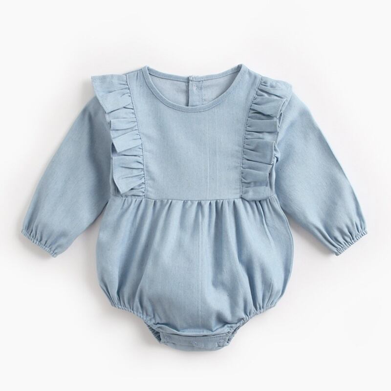 ロンパース オールインワン オータム長袖スリーブソリッド フリルジャンプスーツ オールインワン スプリング ロング ラッフル 春物 秋物 ソリッドカラー mi5382755922422