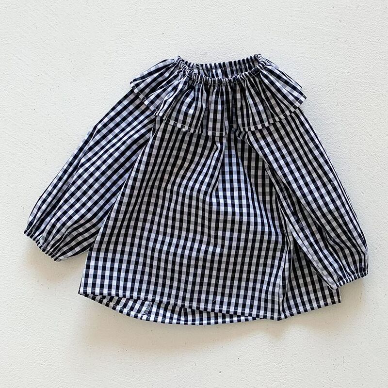 スプリングオータム格子柄長袖スリーブTシャツ プルオーバー コート トップス ロング コットン 春物 秋物 キッズ mi533287068078