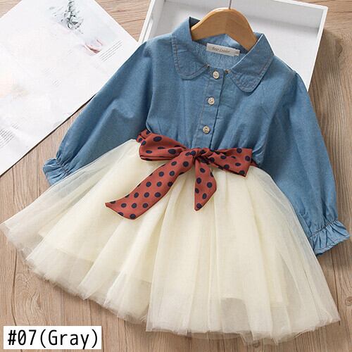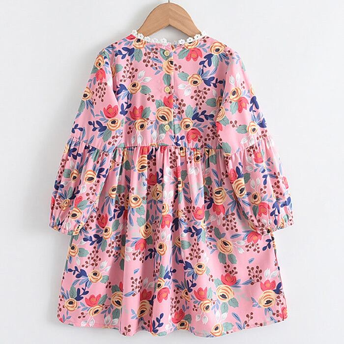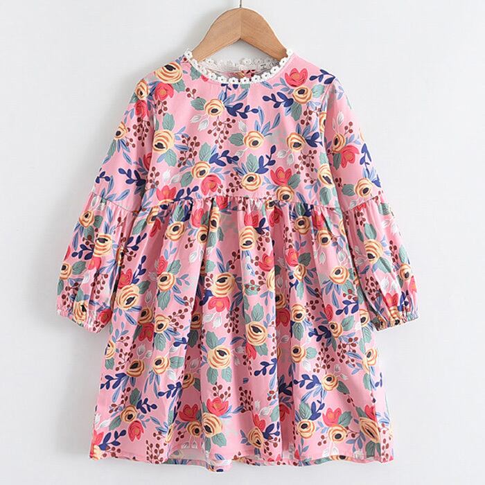 Flowerデザイン プリントドレス スプリングロングドレス ワンピース コットン 長袖 春物 キッズ フラワーデザイン mi5381930186290