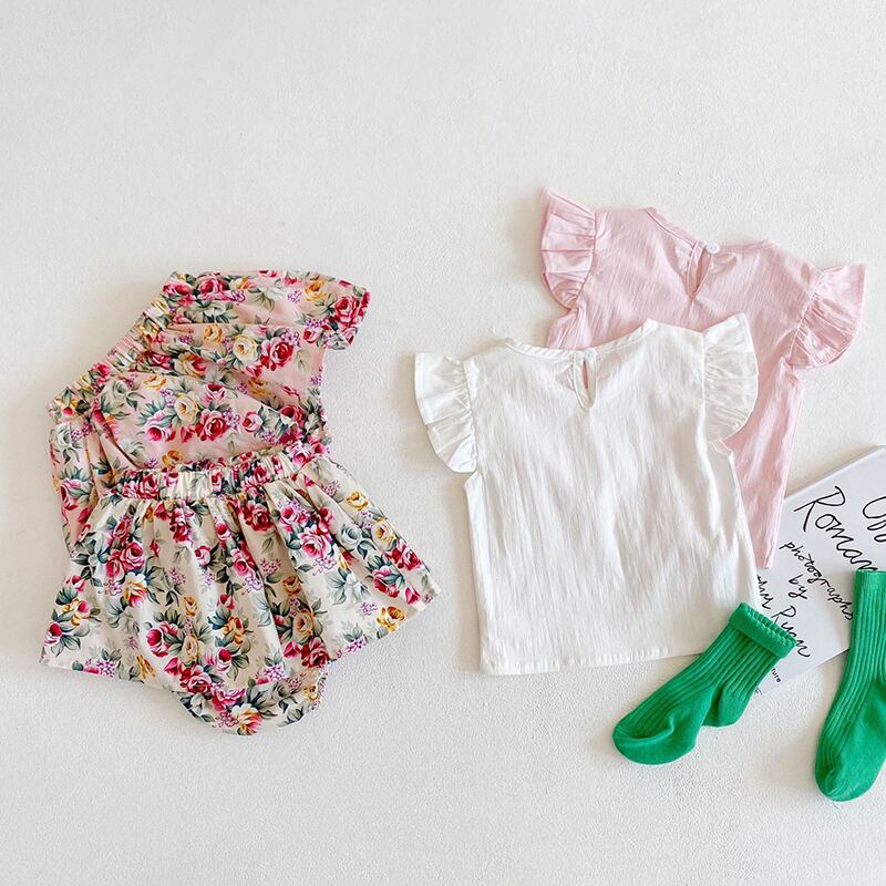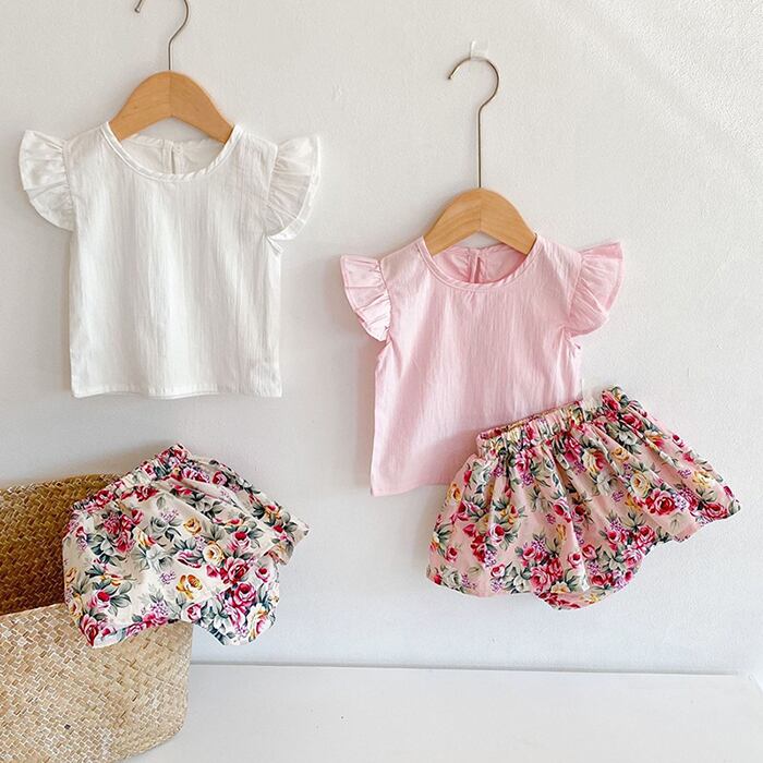 サマー半袖スリーブTシャツ トップス フローラルプリントショーツ ショート ハーフスリーブ 夏物 キッズ ブルマー 花柄 mi5346300301868