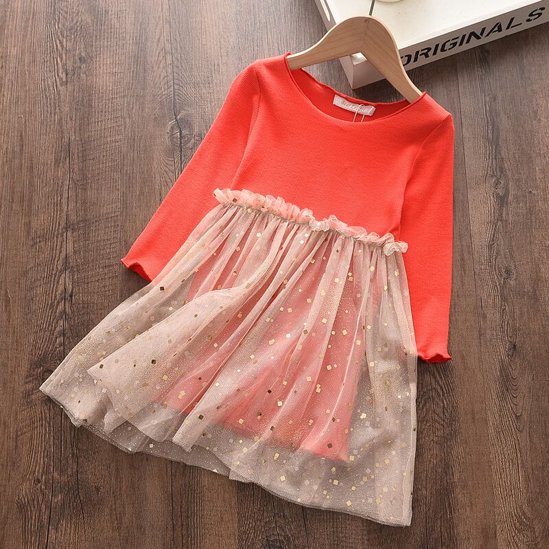 スプリングドレス プリント柄スパンコール長袖スリーブオータム ロング 春物 秋物 キッズ mi5391582894392