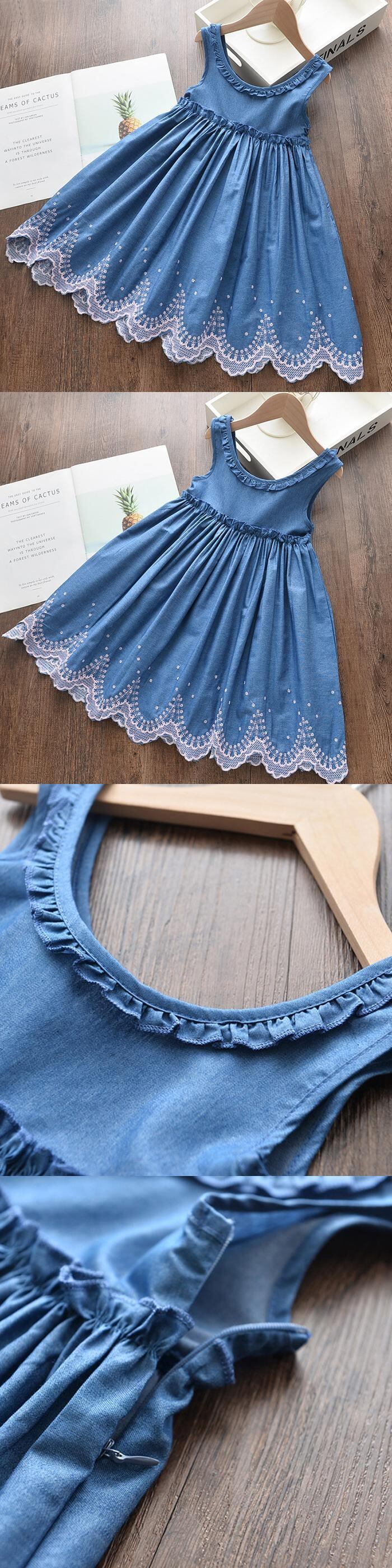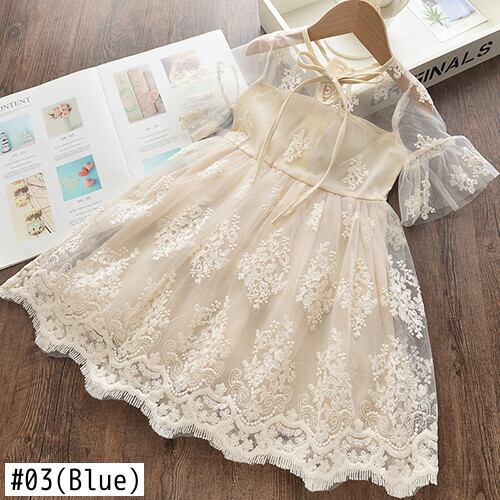 サマードレス レースFlowerデザイン ブルー 夏物 キッズ フラワーデザイン mi531406358313