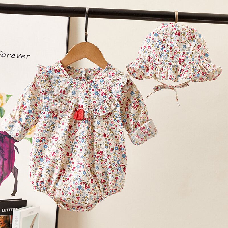 オータムFlowerデザイン プリントワンピースロンパース オールインワン 帽子 秋物 フラワーデザイン mi5394844998772