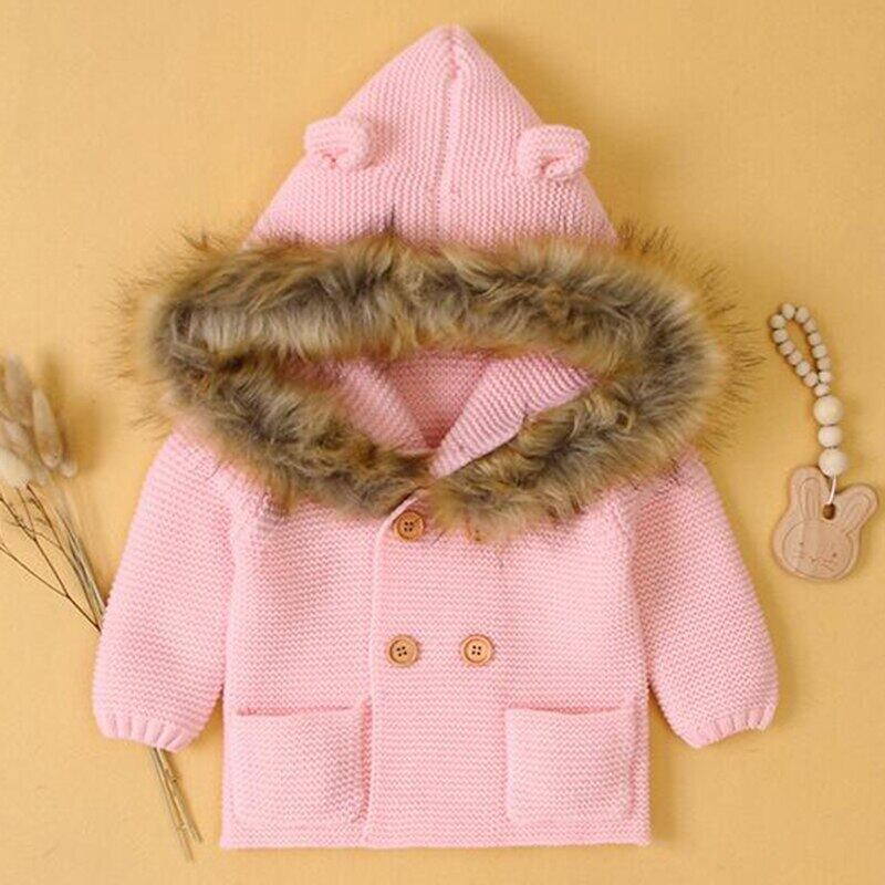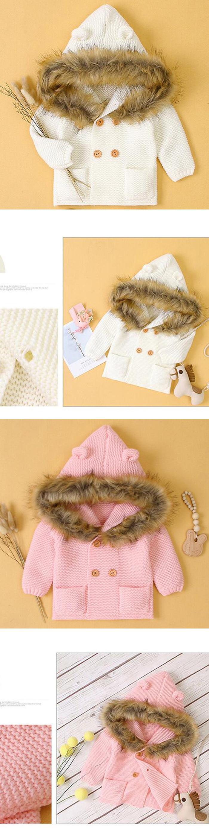 ウィンターニットカーディガンジャケット オータムファーフード長袖スリーブコート ロング 秋物 冬物 キッズ mi5364004470064